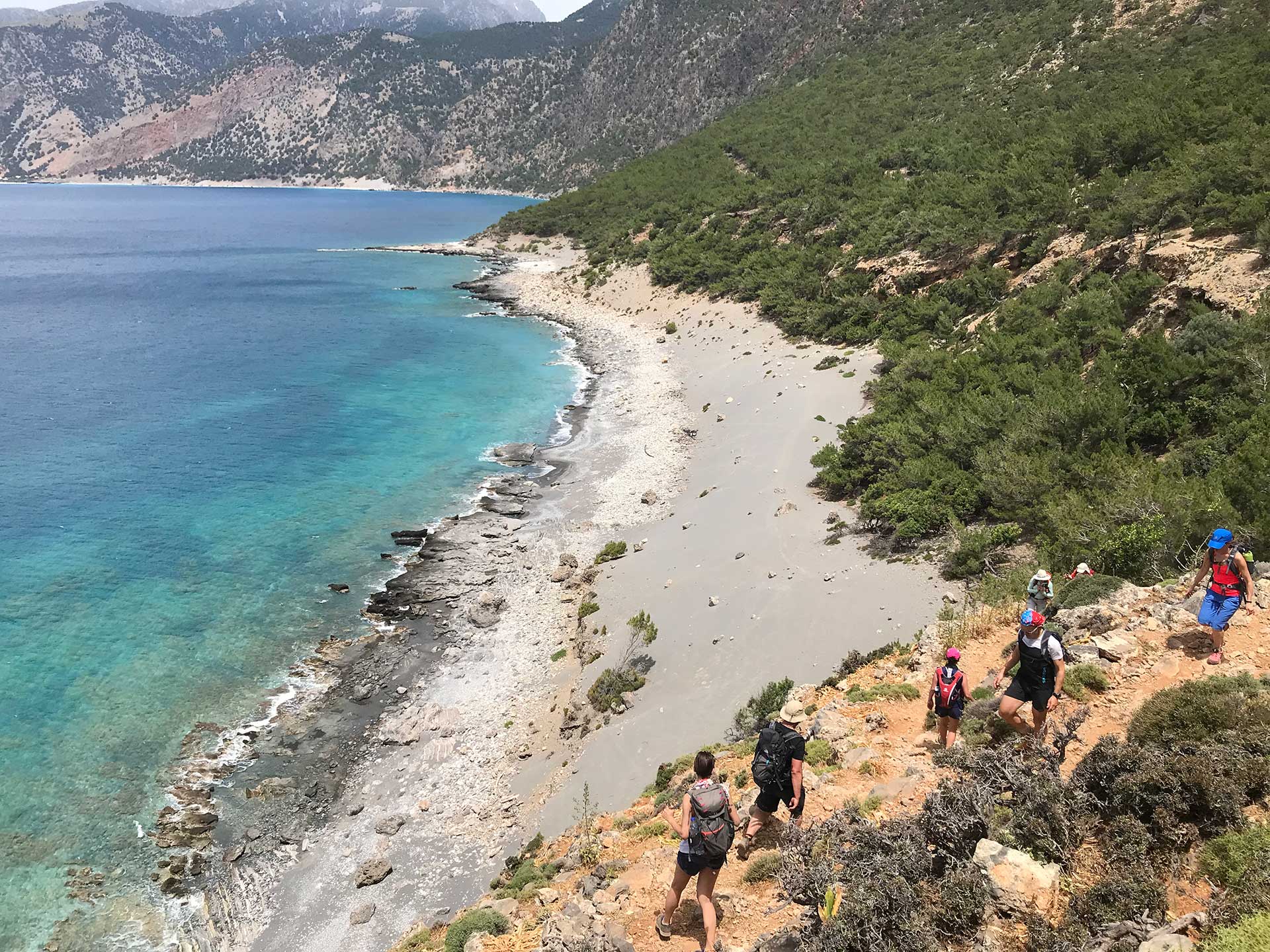 Cet itinéraire original vous conduit à travers les trois plus belles gorges de Crète – Aradena, Agia Irini et Samaria – tout en laissant une place généreuse aux moments de détente en bord de mer, notamment sur la splendide plage de Marmara.